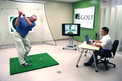 The golf swing is captured by video in two views, face-on and down-the-line. A CD with a copy of the swing is given to all clients of GOLF Medical Clinics.